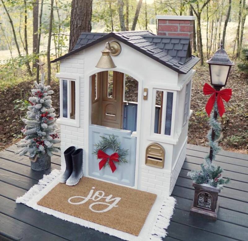 Complete with a light garland passing inside the playhouse, so that the windows are illuminated.